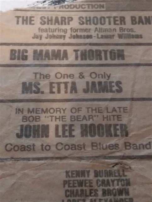THEN THE REAL SHOW STARTED... There was a bit of a wait for the next act, but the stage setup looked interesting…2 drum kits, enough amps for 2 guitars and a bass, and a big Hammond B-3 at the far end of stage right. Sure enough, six guys showed up to play – the guy at the Hammond had long blond hair and the two guitar players…well, they both resembled Dickey Betts, and one had a Warehouse New Orleans shirt on.