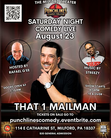 Rafael is currently headlining and hosting shows at respected venues, including the Punchlines Comedy Theater at the Milford Theater in Pennsylvania, where he’s set to host Saturday Night Comedy Live on August 23, 2025, featuring viral sensation That 1 Mailman. Tickets are moving fast and available now at Eventbrite Link.